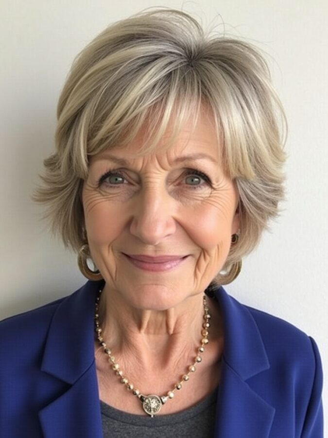 Feathered layers bring a softness and retro-elegance that is highly effective in hairstyles for women over 50 with fine hair. Feathering involves texturizing the ends of the hair so they flip back or sit softly, which creates a sense of movement essential for fine hair. This technique prevents thin hair from looking weighed down and blocky. It can be applied to a bob, a pixie, or a shoulder-length cut. Unlike the ruggedness of a shag cut or a choppy punk style, feathering is all about flow and grace. It works best on straight hair that needs encouragement to move, but can also tame wavy patterns. Adding highlights to the feathered tips emphasizes the movement and creates a multi-tonal effect that boosts the appearance of volume in fine hair. This styling method ensures that fine hair looks airy and voluminous, providing a sophisticated framework for the face without compromising on length or fullness.