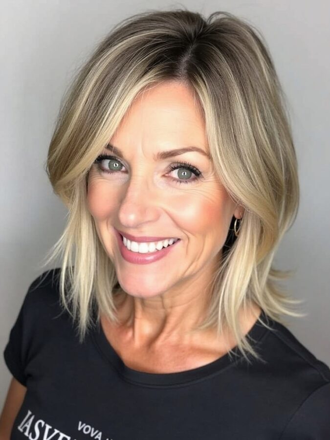 The layered bob is a quintessential look that balances professionalism with playfulness, making it a top contender among hairstyles for women over 50 with fine hair. By incorporating distinct layers into a traditional bob shape, you instantly breathe life into fine hair that might otherwise hang limply. This technique is particularly beneficial for thin hair, as the varying lengths create a scaffolding effect that boosts volume at the roots. Unlike a severe shag cut, the layered bob maintains a polished perimeter, though you can certainly style it to be choppy for a bit of an edge. This versatile cut works perfectly as a shoulder-length cut or slightly shorter, depending on your face shape. It accommodates straight strands by adding movement and enhances wavy textures by reducing bulk. To truly elevate this style, adding soft highlights can accentuate the layers and provide visual texture. Ultimately, this approach transforms fine hair into a fuller, more vibrant mane, proving that fine hair does not have to look flat.