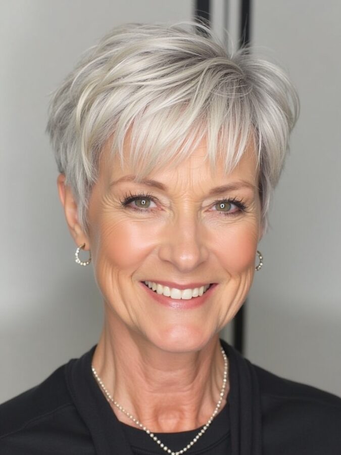 Spiky Pixie hairstyles for women over 50 with fine hair